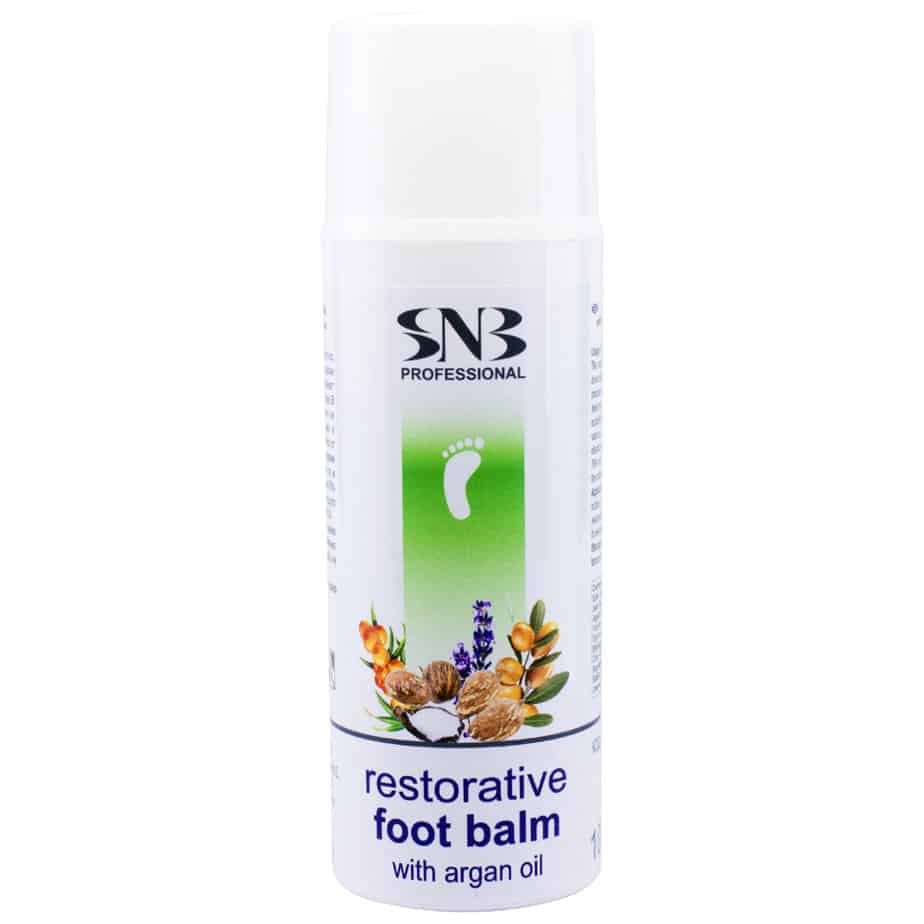 Obnovitveni balsam za noge SNB hidratira in mehča kožo na nogah in stopalih. Kombinacija naravnih olj argana, kakava, rakitovca in karita hrani kožo in pomaga pri regeneraciji. V kombinaciji z urea se aktivira procesom za globoko hidratacijo in obnova v notranjosti kože. Balzam je ustrezen za diabetike, za občutljivo kožo in kožo obdelano z ali od različnih procesov ali postopkov. Redna uporaba občutno izboljšuje elastičnost kože in zmanjšuje nastajanje odmrle kože.